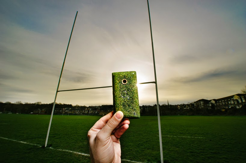 وبعد تقطيع العشب الحقيقي تم إستخلاص المادة الليفية بداخله ، واستمرت هذه العملية ساعتين ، ثم بعد ذلك تم وضع العشب في قوالب مخصصة لذلك وبعدها يتم تغطية العشب بصمغ مصنوع من مواد صديقة للبيئة.وتم بعد ذلك تزويد الهاتف بأزرار و أكسسوارات خشبية.
