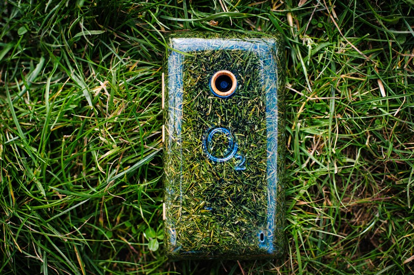 الهاتف الذكي الذي يجمل إسم O2 بمعنى “أوكسيجين” أي ان هذا الهاتف هو صديق للبيئة صنع بمواد طبيعية ، وقد أوضح المصمم “شون مايلز” بأن تطوير الهاتف تطلب صنعه 240 ساعة، مستخدما عشرات آلاف الأعشاب التي تم قصها من “استاد تويكنهام” الواقع جنوب غربي لندن،كما تم إستخدام الخشب في تصنيع ازرار هذا الهاتف الذكي.