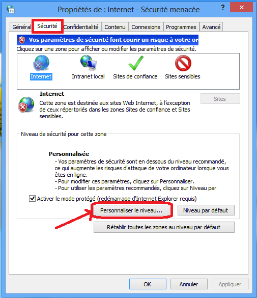 بعد ذلك توجه الى خيار الحماية في الاعلى و انقر في الاسفل على تحديد المستوى اي مستوى الحماية.